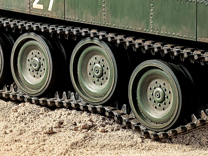• Pre-assembled plastic tracks offer wonderful detail, and have soft resin depictions of rubber pads.