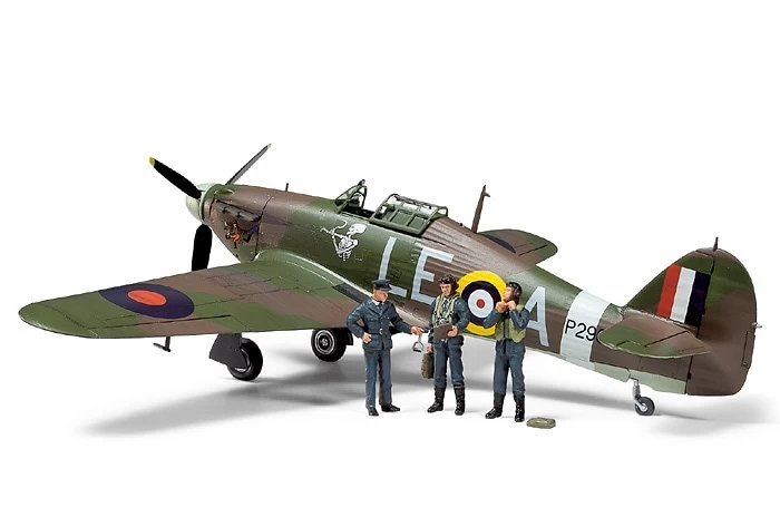 ★1/48 scale plastic assembly kit model of the Hurricane Mk.I. Length: 198mm, Wingspan: 254mm. ★The robust form with fabric-covered rear fuselage has been accurately reproduced. ★Photo-etched parts highlight cockpit details. ★Cowlings may be detached to reveal the Merlin engine even after assembly. ★Two kinds of spinners and propellers included. ★Two pilots and one commander figure plus six marking options included. ★Comes with a photographic reference manual (A5 size, 36 pages).