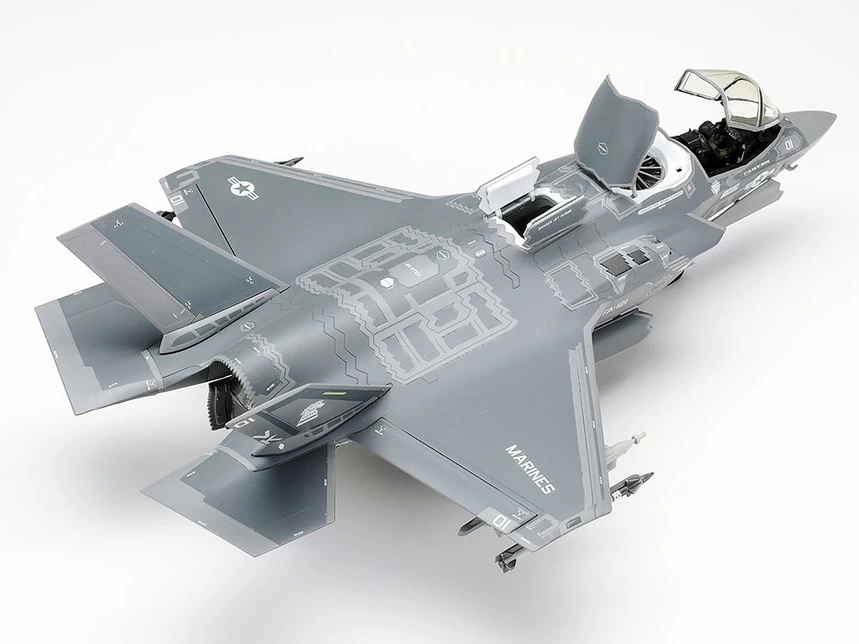 This model kit faithfully recreates the bleeding edge airframe of the F-35B Lightning II. The F-35 Lightning II is a state-of-the-art multirole stealth fighter developed by Lockheed Martin for the U.S. military and selected allies. The fighter has three variants: the multi-role fighter F-35A, the short take-off and vertical landing (STOVL) F-35B, and the carrier-capable F-35C. This 1/72 scale model was manufactured by Italeri in 2019 and now joins the Tamiya 1/72 scale War Bird Series with the addition of Tamiya materials and parts.