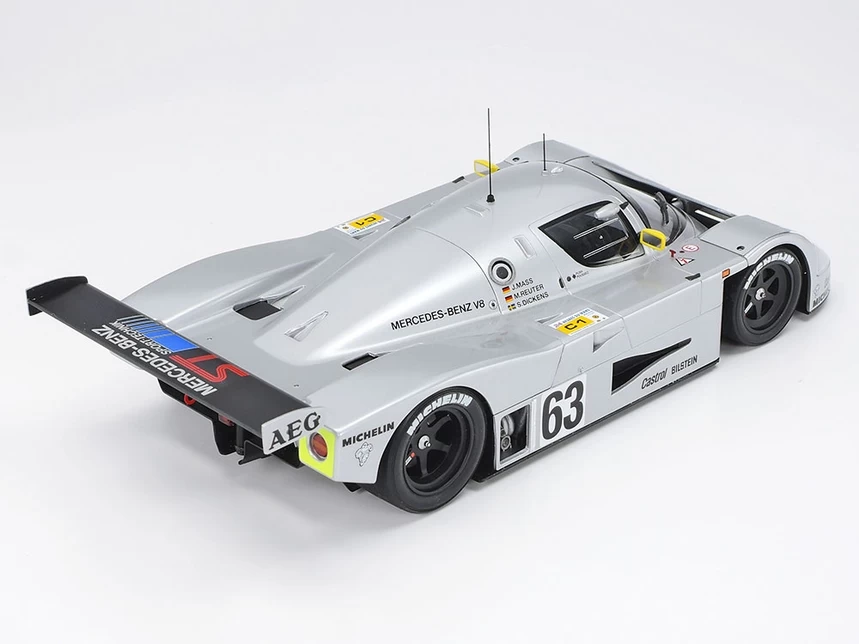 This 1/24 scale model assembly kit recreates the 1989 Sauber-Mercedes C9 as it competed in the 1989 World Sportscar Championship season. In 1989 the Sauber-Mercedes team won seven of eight races in the championship including a glorious triumph at the 24-hour of Le Mans race.