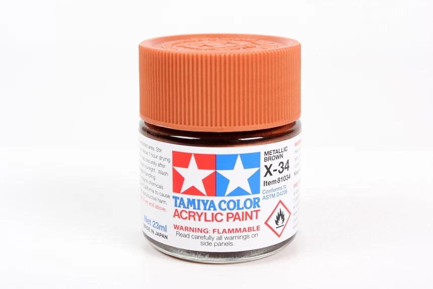 Tamiya acrylic paints are made from water-soluble acrylic resins and are excellent for either brush painting or air-brushing. These paints can be used on styrene resins, Styrofoam, wood, plus all of the common model plastics. The paint covers well, flows smoothly and can be blended easily. Prior to curing, paint can be washed away with plain water.