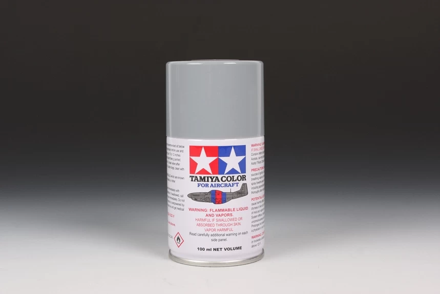 The AS line-up of spray paints are specifically developed to provide the subtle shades necessary for finishing both historical and modern aircraft models. The paint is made up of a synthetic acrylic lacquer that cures in a short period of time. Each can contains 100ml of paint, which is enough to fully cover 2 or 3, 1/48 scale sized plastic aircraft models or one 1/32 model. Tamiya spray paints are not affected by acrylic or enamel paints. They may be applied over a cured spray painted surface.