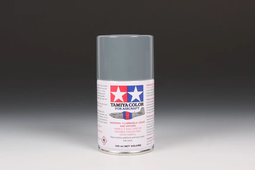 The AS line-up of spray paints are specifically developed to provide the subtle shades necessary for finishing both historical and modern aircraft models. The paint is made up of a synthetic acrylic lacquer that cures in a short period of time. Each can contains 100ml of paint, which is enough to fully cover 2 or 3, 1/48 scale sized plastic aircraft models or one 1/32 model. Tamiya spray paints are not affected by acrylic or enamel paints. They may be applied over a cured spray painted surface.