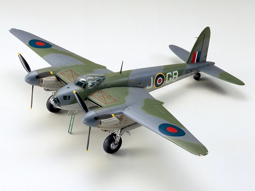 This kit may be assembled into either the B Mk.IV bomber version or the PR Mk.IV photo-reconnaissance version of the multi-role twin-engined de Havilland Mosquito. The distinctive characteristics of these versions, such as the clear nose, canopy bulges, and crew access hatch with ladder have all been accurately reproduced. Parts for the bomber version’s 500lb bombs and the reconnaissance version’s cameras are also included. To top it off, the kit comes with two pilot figures and three marking options, two for B Mk.IV and one for PR Mk,IV.