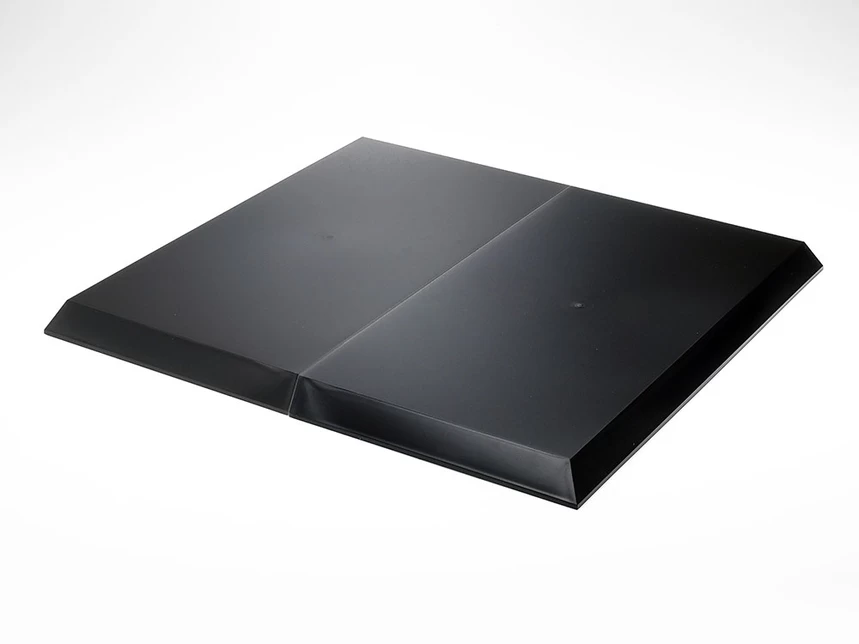 Features sloping sides and a flat rear edge which allows it to be attached to another base for an even larger display area.
