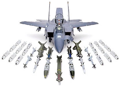 The popular F-15E Strike Eagle (item 60302) was released in 1993. However, since this items release, the F-15E has come to be equipped with a variety of newly developed weapons systems. Following the changes in times and aviation fighting technology Tamiya has modernized its kit to feature accurate replicas of all the latest weapons systems employed by the F-15E Strike Eagle. Includes parts for replication of the GBU-28 “Bunker Buster”, as well as AGM-130 and JDAM guided bombs, and ARAAM air-to-air missiles. 1/32 scale, total length 600, total width 404mm. Faithfully recreates intrepid form of Strike Eagle. Main parts such as fuselage and wings are to be fastened with screws.Radar unit/nose side-access panel, and Vulcan Cannon hatch can all be opened and closed after assembly. Canopy and air brakes can be assembled in either the up or down positions. Cockpit, radar, and Vulcan Cannon are all recreated down to the finest details. Each landing gear is brilliantly crafted in die-cast, and tires are fashioned with synthetic rubber.Each landing gear is brilliantly crafted in die-cast, and tires are fashioned with synthetic rubber.