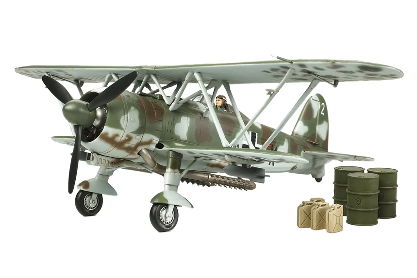 One pilot figure and an ample set of accessories including 50kg bombs, fuel drums, and jerry cans included for a variety of display options.