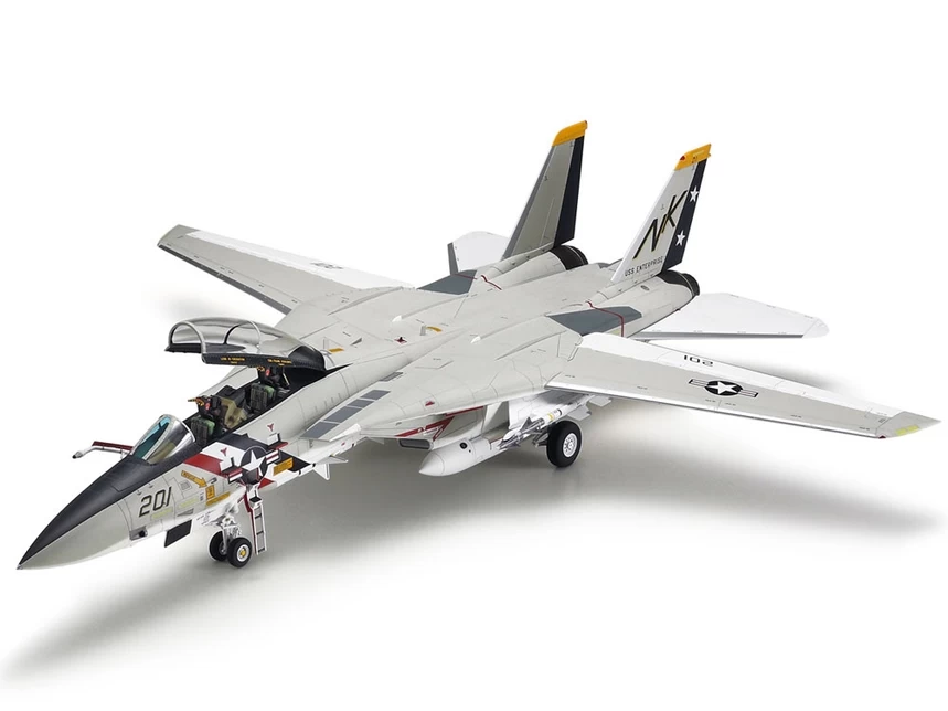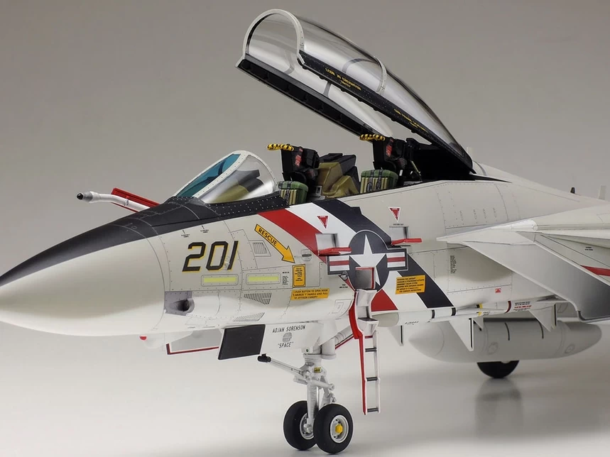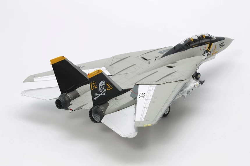 ★This is a 1/48 scale plastic model assembly kit of the Grumman F-14A Tomcat. Fuselage length: 398mm, Maximum Wingspan: 408mm. ★Designed with access to real F-14A Tomcats for superlative accuracy. ★Features moving depiction of variable sweep wing. ★2 sets of parts – interchangeable after completion – depict sealing plates and air bags with wing in fully swept and fully forward positions. ★Slide molding was used to ensure highly realistic canopy, air intake side and fuselage side sections. ★Poly caps allow movement of horizontal stabilizers. ★The model offers a choice of parts to depict open or closed engine afterburner nozzles. ★Separate parts are included to depict the fuel probe on the right of the nose, and the ladder on the left. ★Comes with two U.S. marking schemes and one for the Islamic Republic of Iran Air Force.