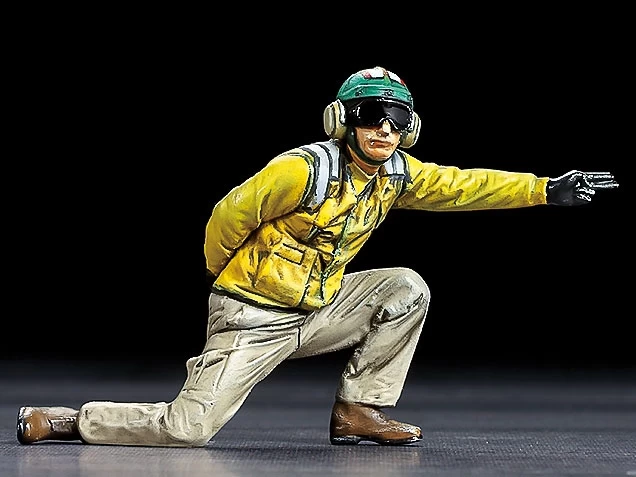 • Includes the catapult officer (called “Shooter” who gives the OK for the operator to release the shuttle) figure and paper flight deck sheet.