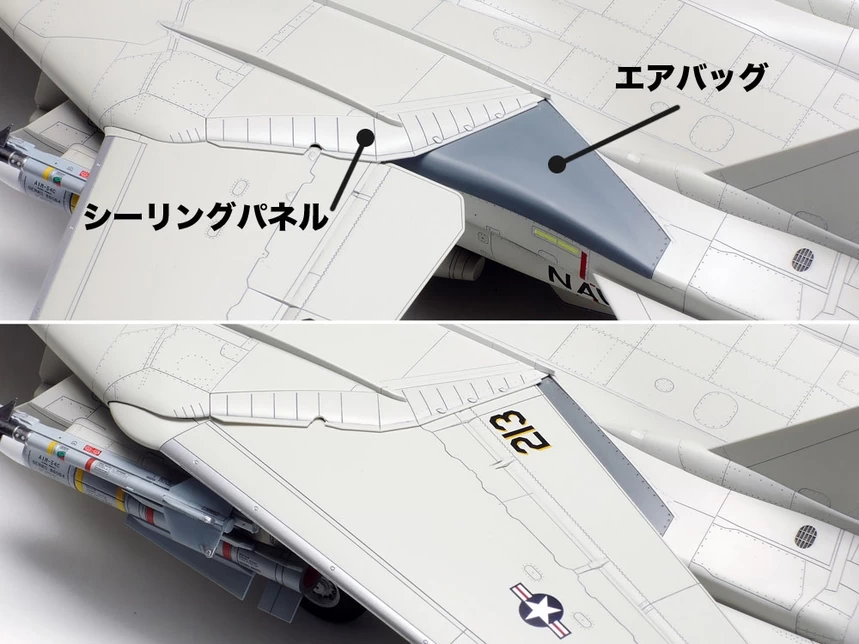 • Features moving depiction of variable sweep wing. 2 sets of parts – interchangeable after completion – depict sealing plates and air bags with wing in fully swept and fully forward positions.