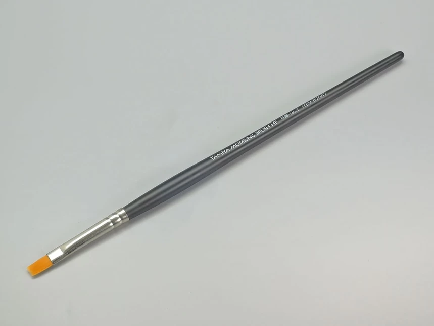 High Finish (HF) brushes feature specially designed resin bristles for use with plastic model paint. This flat brush features stiff, evenly-aligned bristles.