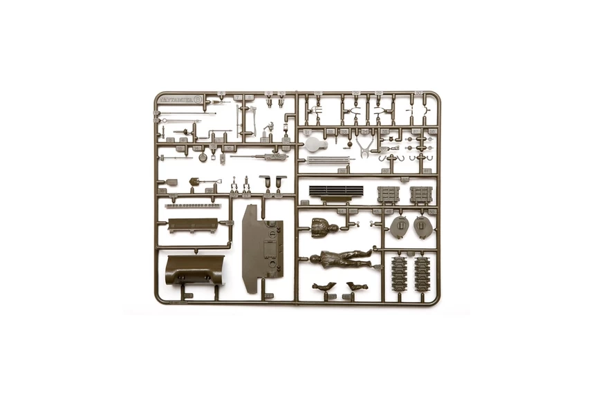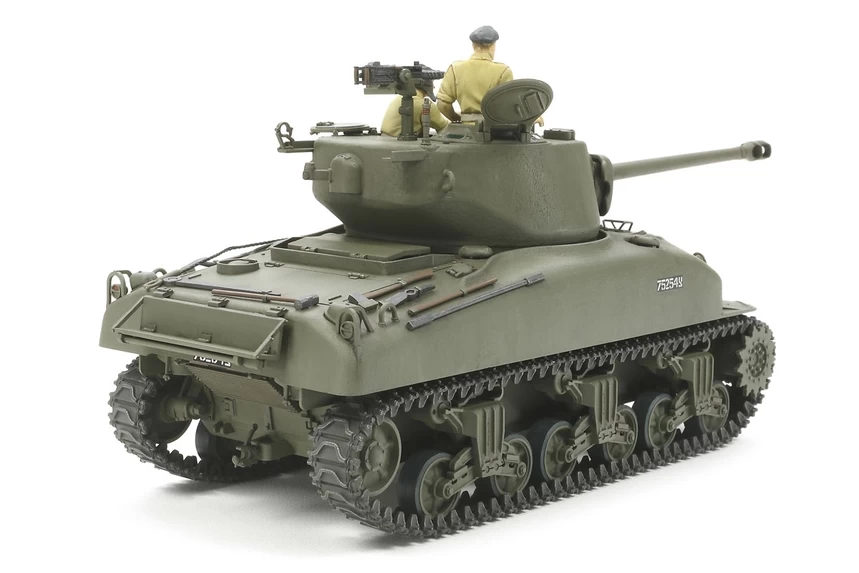 ★1/35 scale plastic assembly kit of the M1 Super Sherman. Length: 210mm, Width: 75mm. ★Distinctive form of the tank including its curved cast hull and 76mm main gun are accurately reproduced based on a thorough study of an actual museum example. ★The model depicts a late-type vehicle featuring the muzzle brake and one-piece loader’s hatch. ★Realistic VVSS details and T54E1 tracks. ★Commander and loader figures, plus 3 types of markings included.