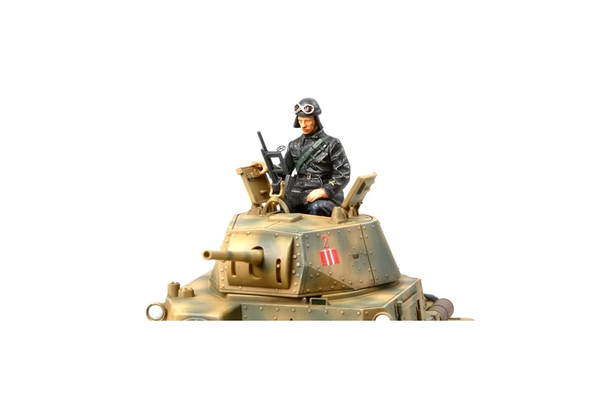 This is a 1/35 scale plastic assembly kit model. ★Length: 143mm. The unique riveted form of this tank is faithfully reproduced. ★Easy to connect assembly type tracks included. The suspension features a highly realistic finish. ★Metal parts for the gun barrel and photo-etched parts for the anti-aircraft gun sight etc are included. ★Other highlights of this model are its range of tools and radiator cap. ★A standing figure, a sitting tank crewman figure, 3 kinds of decals for the North African front, and a set of badges of rank are included.