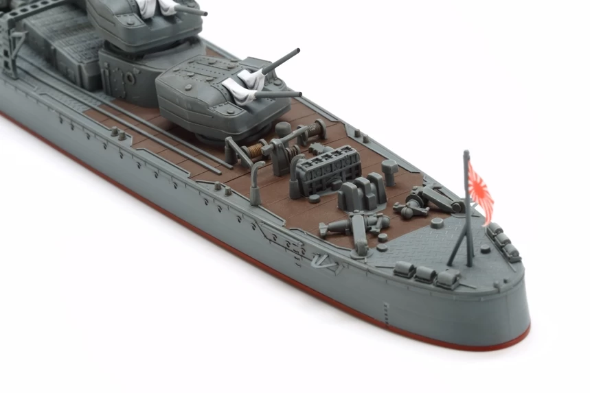 Features brand new components depicting bridge parts, main mast, aft deck surfaces, twin 12.7cm gun mount, twin 25mm machine gun stations, mines and paravane (minesweeper apparatus).