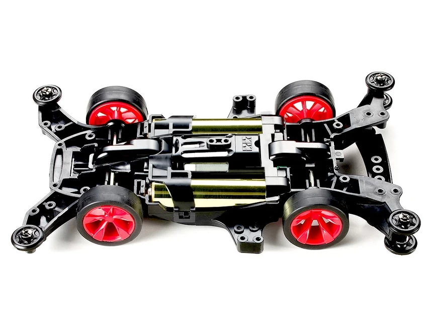 The MA (Midship AERO) Chassis has its motor in the center, and features a design which focuses upon achieving outstanding aerodynamic performance. It has a gear ratio of 3.5:1, 6 individual rollers, a rear skid bar and other speedy features developed thanks to years of design experience. The single-piece monocoque frame also guarantees that assembling and keeping the car well-maintained is a task that can be performed by beginners and veteran racers alike.