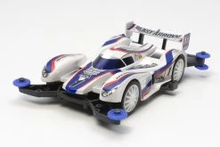 This is the Blast Arrow, which is the first car to feature the brand-new MA (“Midship Aero”) chassis. This vehicle has the best of the MS chassis, which uses a motor with dual shafts, and the AR chassis which employs many cool aerodynamic chassis features. With front wheels fully enclosed by the cowling, and a delta wing, the body of the machine will bring to mind the full-size prototype sports cars which can be seen in prestigious races across the world. It enjoys similar ease of maintenance to the MS chassis, and its employment of a 1-piece chassis enables the machine to achieve excellent power transmission.