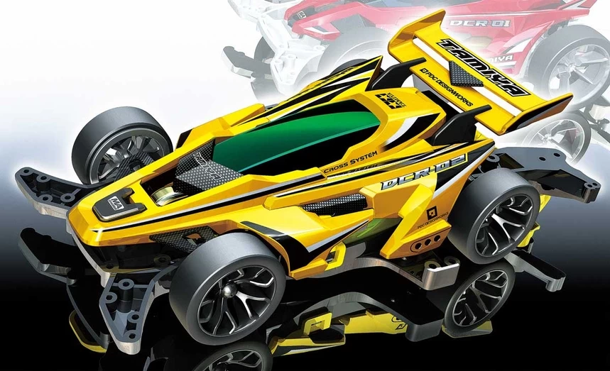 This is the DCR-02, which is Tamiya’s second generation of multi-piece mix and match body designs. The futuristic 3-part body in this kit was designed by legendary Japanese designer Takayuki Yamazaki of PDC Designworks. This particular model is based upon the midship aero MA chassis, which is a competitive modern racing platform.