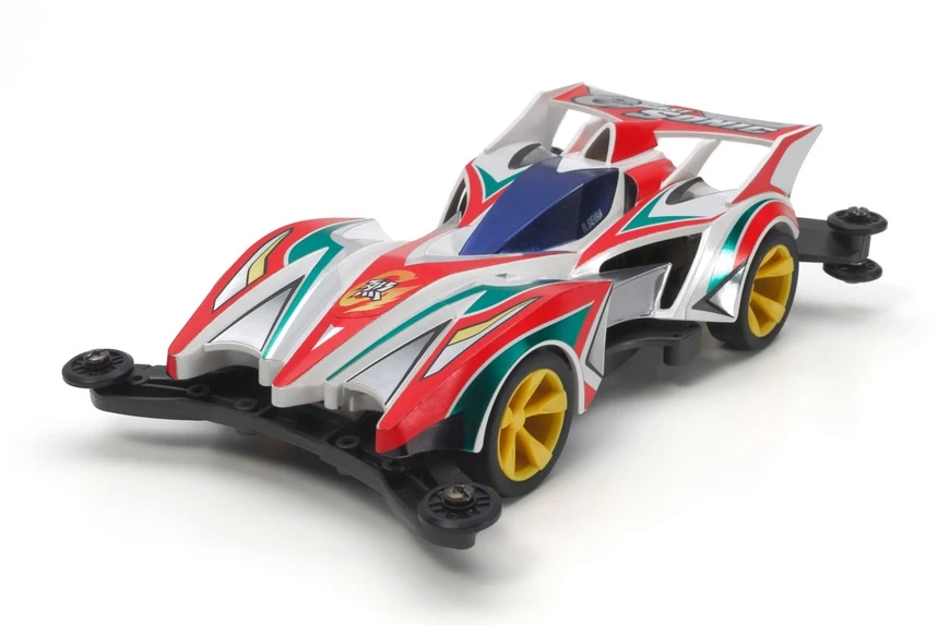This plastic Mini 4WD model assembly kit creates the Great BlastSonic, the machine driven by hero Retsu Seiba in the popular Mini 4WD comic series “Let’s & Go!! Return Racers!!” The series of Sonic models has a proud history, and this exciting model continues the traditional marking and body styles, with a sharp modern twist! What’s more, by simply modifying the nose and rear wing parts with a modeling knife, Mini 4WD fans have the choice of two different yet equally fascinating body styles!