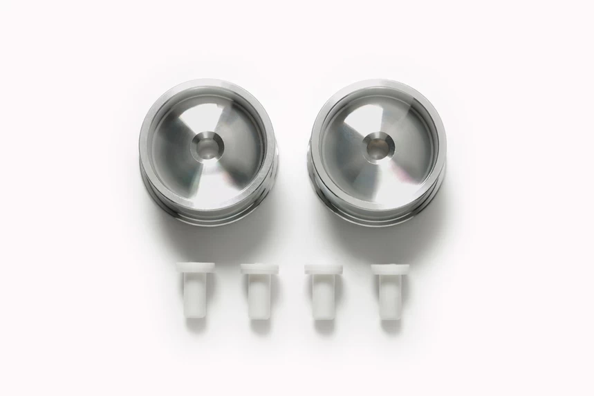 These are high precision turned aluminum large diameter narrow wheels for Super X and Super XX chassis Mini 4WD cars. They offer your car accurate rotation and feature greater strength against shocks, and their weight gives your car a lower center of gravity.