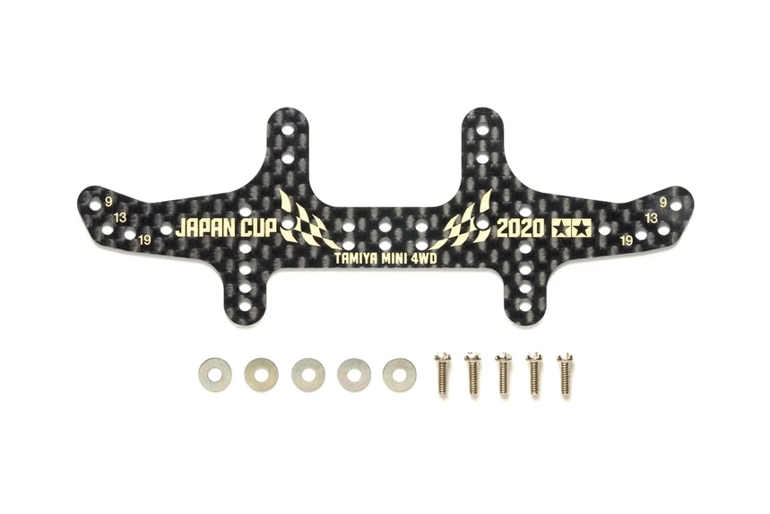 This is a limited-edition carbon fiber stay to commemorate Japan Cup 2020! Use it to boost performance and give your car a new look! This features the same design as Item 95132, but with the print in gold.