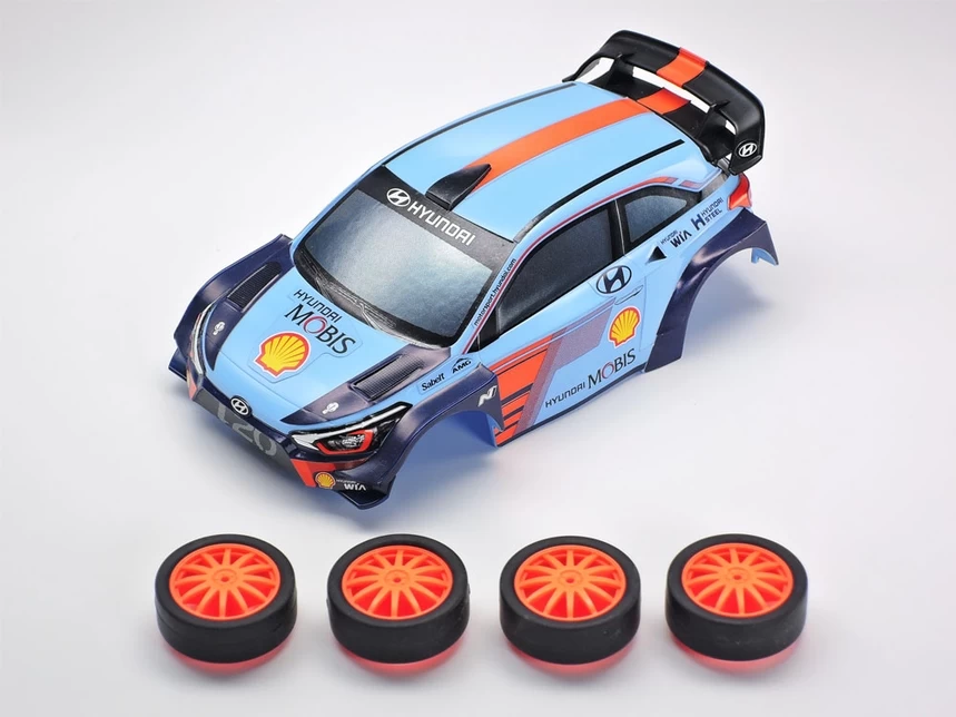 The Hyundai i20 Coupe WRC rally car is a favorite among auto racing enthusiasts. Mini 4WD racers can join in on this fandom with their very own Mini 4WD race car version! The car is based upon the midship aero MA chassis.