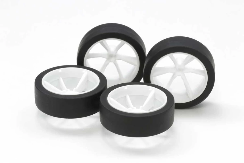 This set includes a white color variation of the stylish wheels from the DCR-01 kit (Item 18646).
