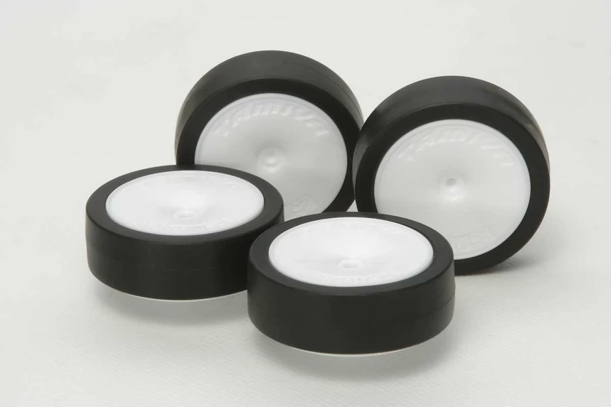 Low-profile tires are a popular option among Mini 4WD racers since they are lightweight and help reduce shocks from jump landings. 26 mm sizes have been used for some time and this new 31mm size will give mini 4WD racers another tuning option. With 26mm and 31mm tuning options racers can adapt according to the track and class conditions. The included dish-type wheel has 6 ribs to provide superb rigidity and its offset (5.3) is perfect for machines that use 60mm hex axle shafts such as MS and VS chassis equipped cars.