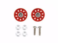 These are a color variation of Tamiya’s 13mm rollers used in Mini 4WD racing cars. Lightweight race-spec parts save around 30% compared to standard rollers thanks to holes bored into them.