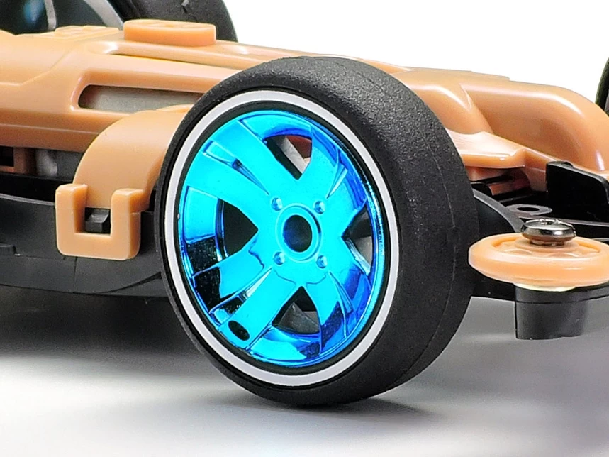 The MA (Midship AERO) Chassis has its motor in the center, and features a design which focuses upon achieving outstanding aerodynamic performance. It has a gear ratio of 3.5:1, 6 individual low-friction rollers, a rear skid bar and other speedy features developed thanks to years of design experience. The single-piece monocoque frame also guarantees that assembling and keeping the car well-maintained is a task that can be performed by beginners and veteran racers alike.