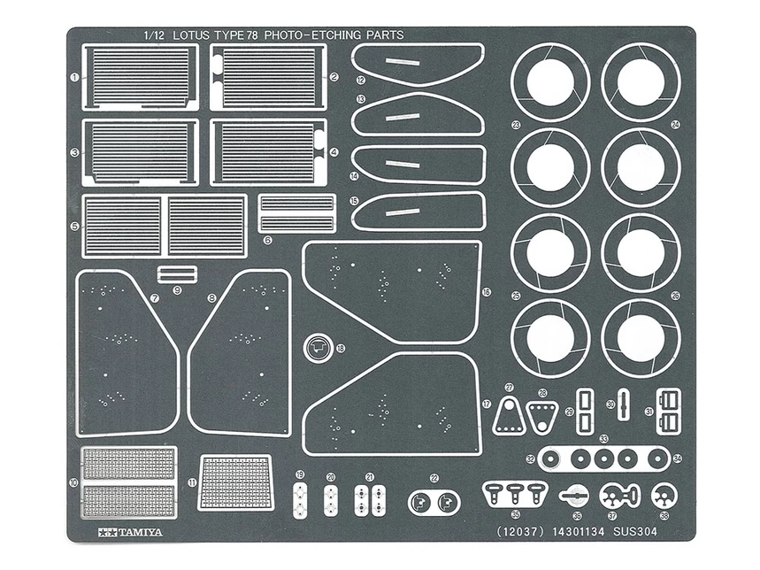• Photo-etched parts include brake discs, radiator, two types of front and rear wingtips, and seat buckles to complete the set.