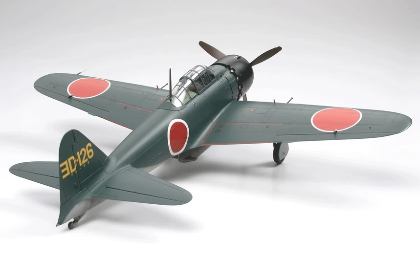 The Mitsubishi A6M Zero was the Japanese Navy’s main fighter throughout the course of WWII. In the latter half of the war, the Model 22 was refined to create the Model 52 to counter new U.S. aircraft such as the P-38 Lightning and F4U Corsair. It featured 50cm shorter wings with rounded wingtips, individual exhaust pipes and top speed of 565km/h. A6M5a was produced with a larger capacity (125 rounds) belt-type cannon ammunition system in February 1944. The Model 52 first saw action during the closing stages of the Solomons campaign in the autumn of 1943 and went on to fight in the skies above the Marianas, Iwo Jima, Okinawa, as well as Japan itself, until the end of the war.