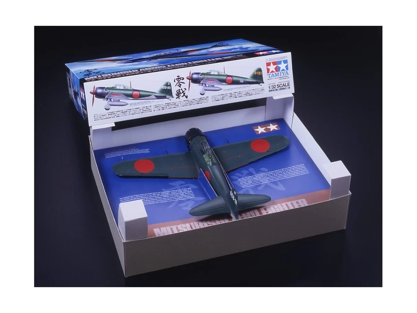 This is a 1/32 scale plastic assembly kit model of the A6M5 Zero Fighter model 52 Zeke which fought in the latter stages of WWII. ★Length: 285mm, Width: 344mm. ★The beautiful body line from the uniquely curved engine cowl to the wings is faithfully reproduced. ★In addition to the realistically reproduced fuselage, the Nakajima “Sakae” type 21 engine and the cockpit interior are rich in detail. ★The rudder, flaps, and the lower fuselage parts are all moveable. ★Choice of either open or closed cowl flaps and canopy. ★Included metal parts ensure a sharp finish for the 20mm cannons and pitot tube. Machine gun barrels have been pre-painted. ★Photo-etched parts depicting metal parts such as air intake mesh and seatbelts are included for greater realism. ★The kit comes with four kinds of decals including one all-new option as well as masking seals for the canopy. ★Two pilot figures in standing and seated positions are included. ★A display stand to depict the Zero “In-Flight” is included. ★Completed model can be stored in the special packaging.