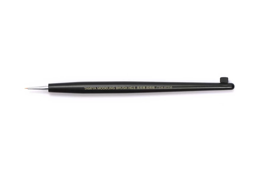 • Handy grips are crafted in solvent-resistant plastic and have laser-engraved letters “TAMIYA MODELING BRUSH HG II”.