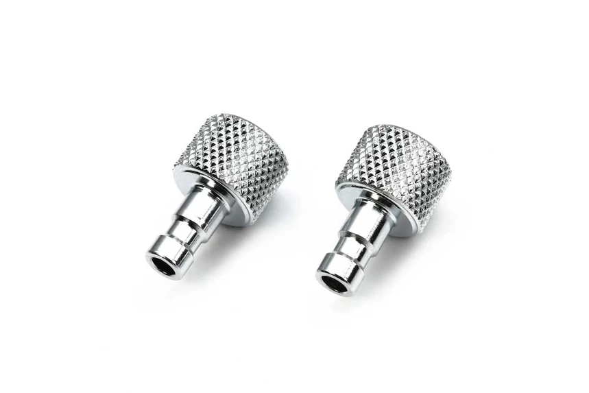These are replacement plug sections for the TAMIYA Quick Hose Joint, which allows you to disconnect and connect airbrush and hose with a single touch – simply by sliding its center section!
