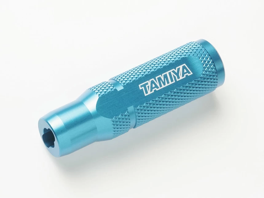 Tamiya offers this tool to make R/C assembly easier than ever. Just fit any Tamiya brand 5mm adjuster into the wrench to easily screw into place with a minimum of force. Wrench allows direct vertical access to those hard-to-reach places. Wrench features classy blue anodized aluminum finish and is compatible with the following adjusters: