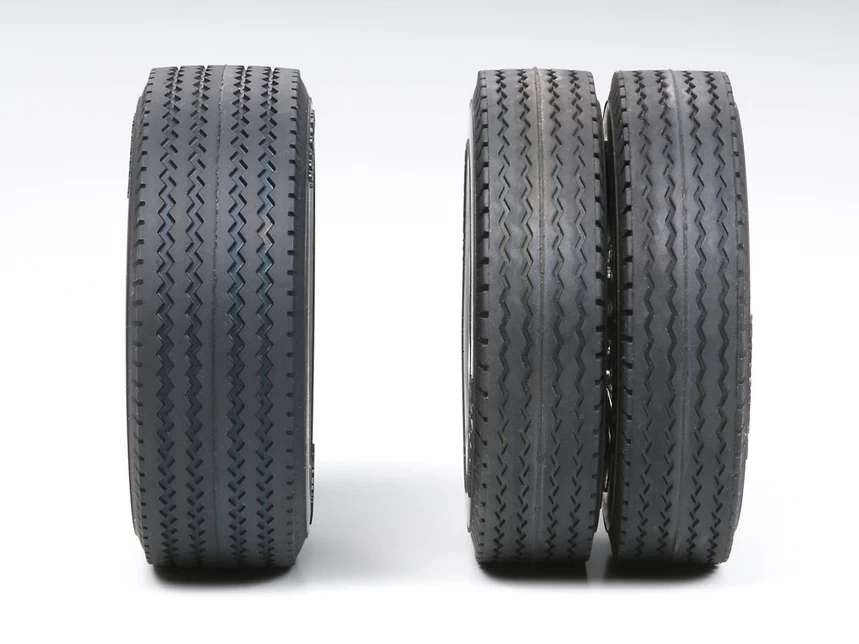 The container features an aluminum frame with durable ABS front, top, and side panels. The well-known NYK logos are reproduced on the included vinyl sticker sheet, and the container can be detached from the semi-trailer after assembly. The 3-axle semi-trailer chassis comes with a realistically reproduced leaf-spring suspension. This semi-trailer can be connected to any Tamiya 1/14 R/C Tractor Truck and a variety of Option Parts can also be installed for enhanced realism.