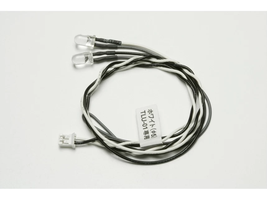 ★These 5mm diameter white LEDs are for use with the Tamiya LED Light Unit (TLU-01). ★They recreate the blue-tinged white tone of HID lights seen on real cars. ★Connectors ensure secure attachment. ★Two LEDs are included, plus clips for stowing cables.
