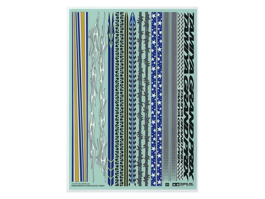 Make your touring car model look even more stylish by adding some decoration to the body. This sticker set includes stripe marking stickers which add a speedy look when applied to the bonnet of the car. It also features designs which can be applied to the side of the car to give the model a customized look.