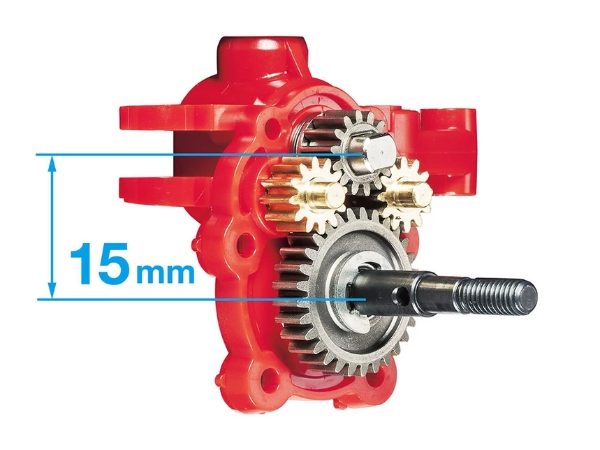• 37.35:1 gear ratio (with the kit-standard 18T pinion gear) gives great drive. The model is also compatible with 20T pinion gears (for a 33.61:1 gear ratio).