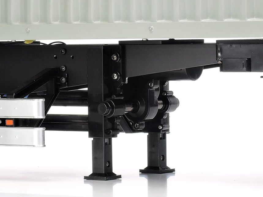 ★These support legs help you attach and detach your truck from a trailer using R/C commands, encompassing not only attachment to the coupler, but also motion of the support legs. ★4-channel R/C equipment, a servo for the coupler, and three R6/AA/UM3 batteries are separately required. ★Includes a motor for support leg motion, pre-wider micro-switch, die-cast rack, and aluminum pinion parts.