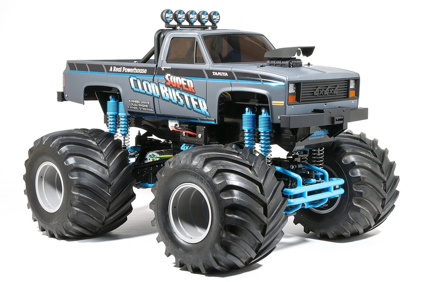 The Super Clod Buster features a twin-motor dual gearbox 4WD drive train, a durable link-arm, eight coil springs and massive 165mm diameter tires for powerful and efficient running to overrun any obstacle. Want to enjoy monster truck running? The Super Clod Buster is the perfect monster truck for you!
