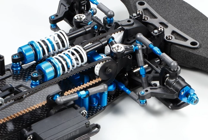 ●Double Cardan Joint Shafts (x2) ●TRF Special Dampers (Hard Black Coating) ●Hi-Torque Servo Saver (Black) ●TA06 Front Direct Coupling (39T) ●Clamp-Type Aluminum Wheel Hubs (4mm thickness) ●3x42mm Aluminum Turnbuckle Shaft ●3x32mm Aluminum Turnbuckle Shaft ●3x23mm Aluminum Turnbuckle Shaft ●TRF416 Low-Friction Drive Belt (Rear) ●5mm Aluminum Ball Connectors (Blue) ●Universal Shaft ●Low-Friction Belt ●Full Ball Bearings