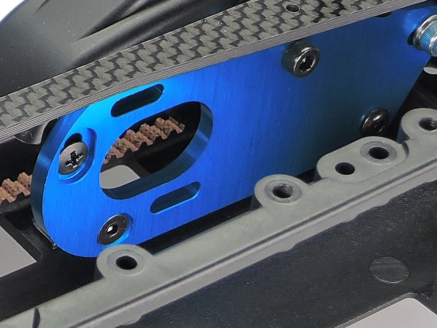 • Dedicated carbon fiber front-center stiffener elevates pitch rigidity without sacrificing roll flex, for improved front grip and cornering. Includes a dedicated new servo mount component.