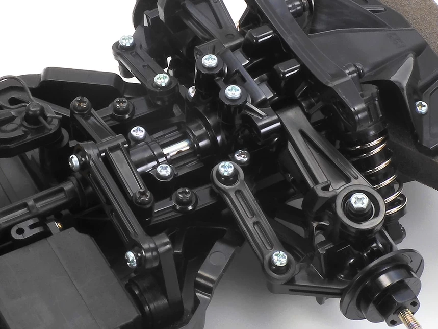 • The model utilizes the shaft-driven 4WD TT-02 chassis which features superior adaptability and stability.