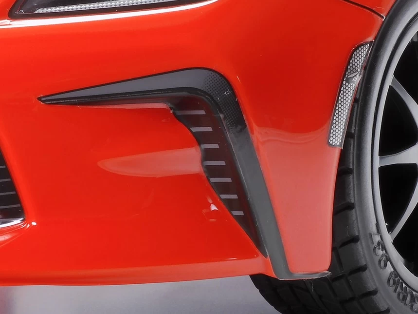 This Tamiya R/C kit recreates the Toyota GR 86 as a 1/10 R/C product. The Toyota GR 86 is a lightweight front- engine, rear-wheel-drive sports car which was announced in April 2021. It has a broad stance, low center of gravity, and employs aerodynamic components rooted in motorsports. The aluminum engine hood, roof and front fenders are lightweight and the suspension features front strut and rear double wishbone systems. This car is powered by a 2.4-liter horizontally opposed four-cylinder DOHC engine capable of 235hp.
