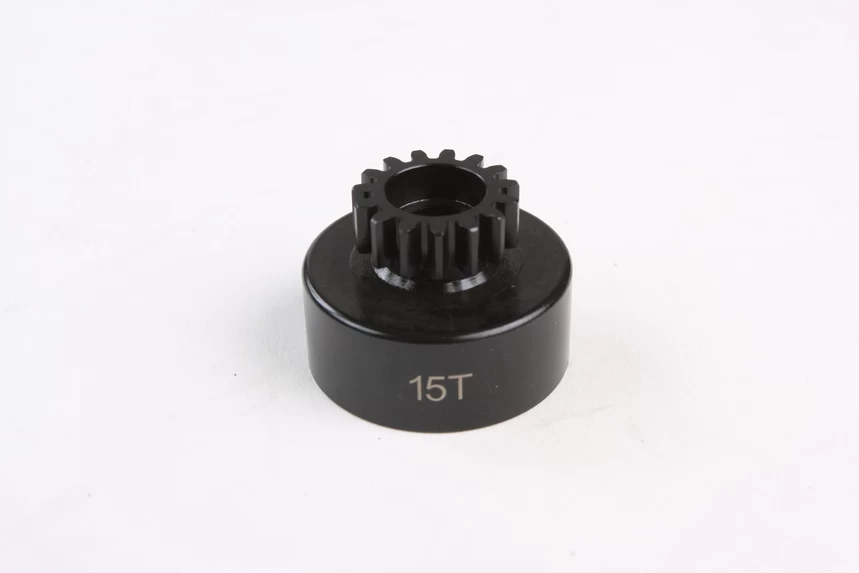 The 1/8 Glow-Engine R/C 4×4 Racing Buggy TRF801X (Item 84067) kit comes with a standard Clutch Bell (14T) which has a 1:11.34 gear ratio. This new Clutch Bell (15T) allows you to further customize the settings of your machine with a gear ratio of 1:10.58.