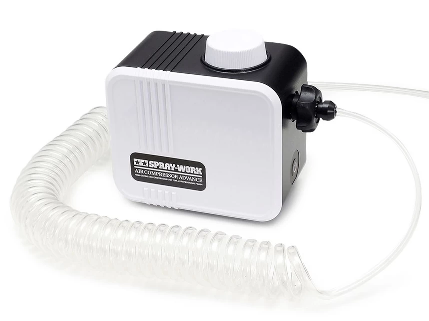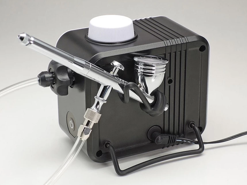 This is a very lightweight and compact air compressor designed to work with Tamiya’s Spray Work range of airbrushes. It includes an AC adapter with parts to allow use of power in countries across the globe! While compact, this compressor’s 0.08MPa continuous pressure rating ensures plenty of power for great paint jobs on a range of plastic models, from blanket painting of larger areas, to the picking out of more detailed sections like camouflage on military models.