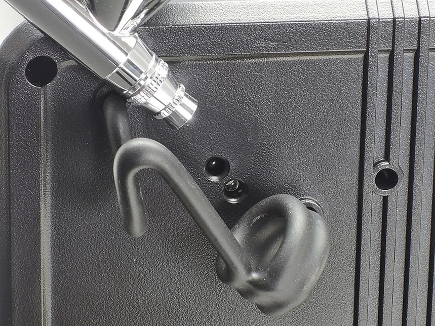 • Comes with an airbrush hanger with a sensor switch that turns on the compressor when the airbrush is removed, and off when the airbrush is replaced again.