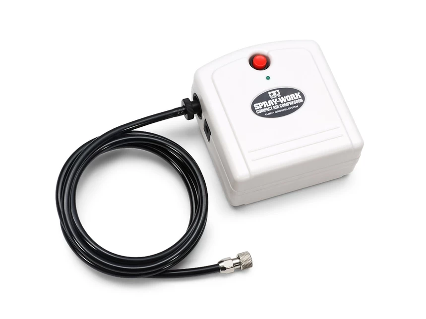 This compact compressor will allow you to enjoy the fun of airbrush painting. This compressor provides a consistent air supply enabling you to take on fine painting tasks such as detailed camouflage patterns. Uses a household 100V power outlet. Can be used as is and is compatible with every type of Spray-Work HG Airbrush, including the HG Airbrush III and HG Single Action Airbrushes. In addition to the compressor, A/C adapter and air hose are included with the set.