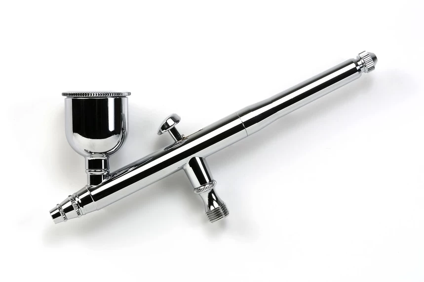 The Spray-Work HG Airbrush III (Super Fine ) features a 0.2mm fine nozzle and is equipped with a removable paint cup (7cc) and is also compatible with separately sold plastic paint cups with larger capacities (Item 74511: 17cc / Item 74524: 40cc). The 0.2mm fine nozzle was only previously available with item 74514 Spray-Work HG Super Fine Airbrush which has an integrated (3cc) paint cup.